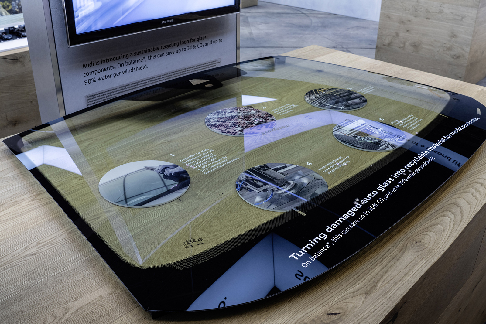 Döngüsel ekonomi stratejisiyle, giderek daha fazla kapalı malzeme döngüsü oluşturmayı hedefleyen marka, artık kullanılmayan malzemelerin üretim sürecine yeniden dahil edilmesi konusunda da çalışmalarına ağırlık veriyor. Festivalde bunun en yakın örneğini de sergileniyor: Ortakları Reiling Glas Recycling, Saint-Gobain Glass ve Saint-Gobain Sekurit ile hayata geçirilen pilot projede artık kullanılmayan otomobil camları, Audi Q4 e-tron modellerinin camları için tekrar kullanıma dahil ediliyor.