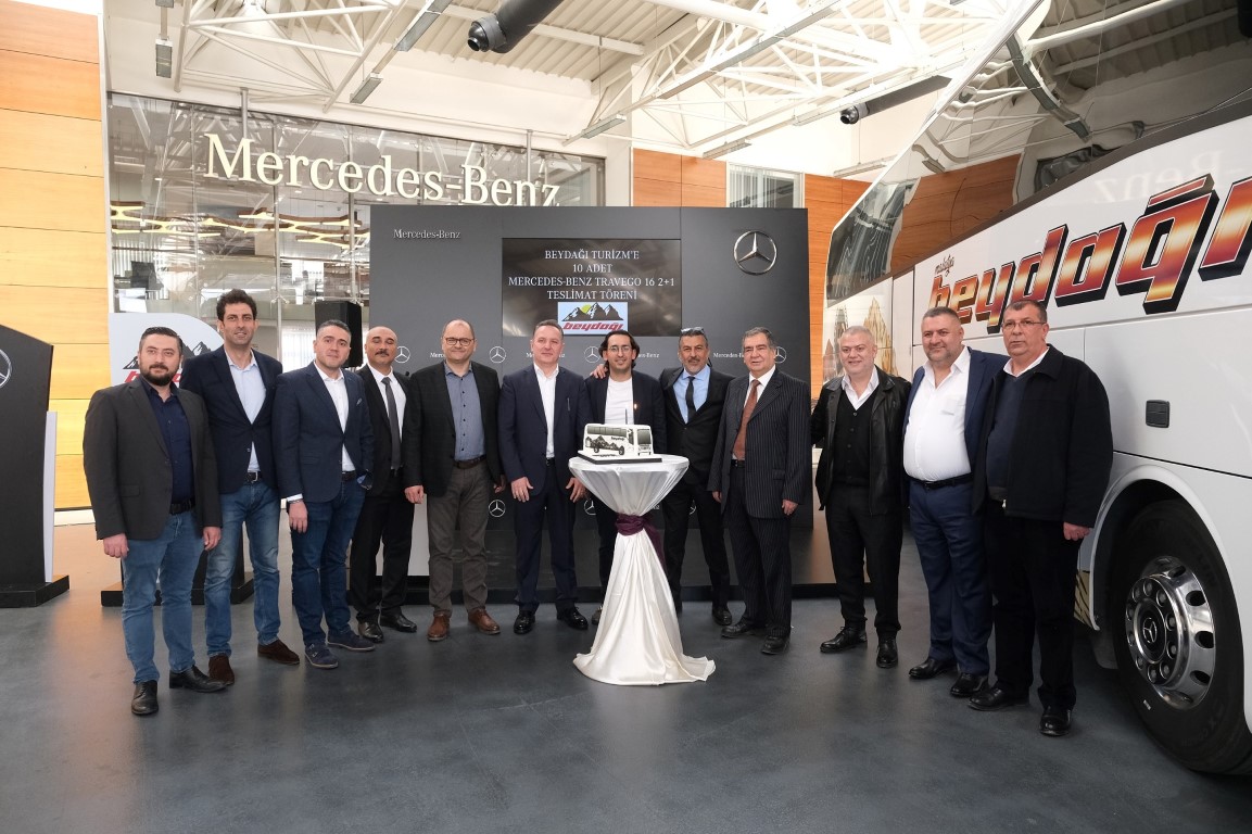 Mercedes-Benz Türk Bayisi Mengerler tarafından yapılan 10 adet Travego 16 2+1 satışının ardından Mercedes-Benz Türk Genel Müdürlük Kampüsü’nde bir teslimat töreni düzenlendi. Gerçekleştirilen törende araçlar; Mercedes-Benz Türk Otobüs Filo Satış Müdürü Burak Batumlu ve Mengerler İstanbul Genel Müdürü Güven Onan, Mengerler Otobüs Satış Müdürleri Günay Eren ve Hüseyin Tilki tarafından, Beydağı Turizm ortakları Aydın İkde, Sönmez İkde, Murat Mutlu, Reşat Mutlu ve Mert Mutlu’ya teslim edildi.