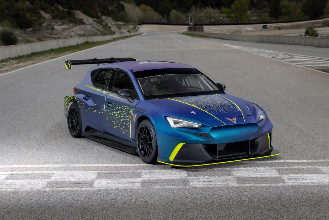 CUPRA e-Racer, Pau Ville, Fransa’daki FIA ETCR eTouring Car Dünya Kupası 2022’nin (6-8 Mayıs) açılış yarışlarında yepyeni bir görünümle piste çıkıyor. Neon sarısı kinetik vurgularla kaplı, canlı ve biçim değiştiren yeşil ve mor tonlara sahip çok katmanlı gövde rengi, ilhamını dijital dünyadan alıyor ve markanın estetiğinde devrim niteliğinde bir değişikliği işaret ediyor.
