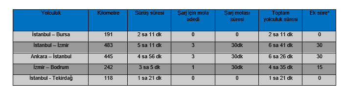 ë-C4* ile yapılan seyahat sürelerine ilişkin bazı örnekler: