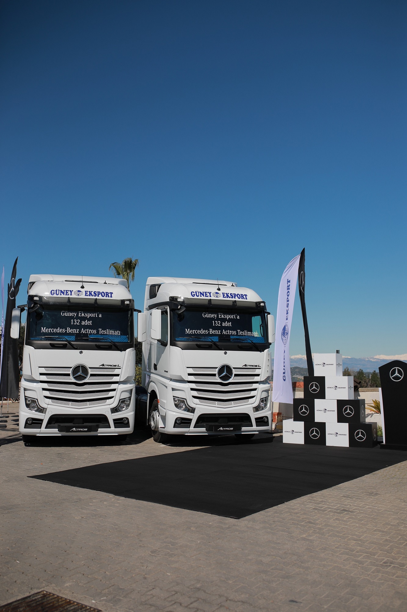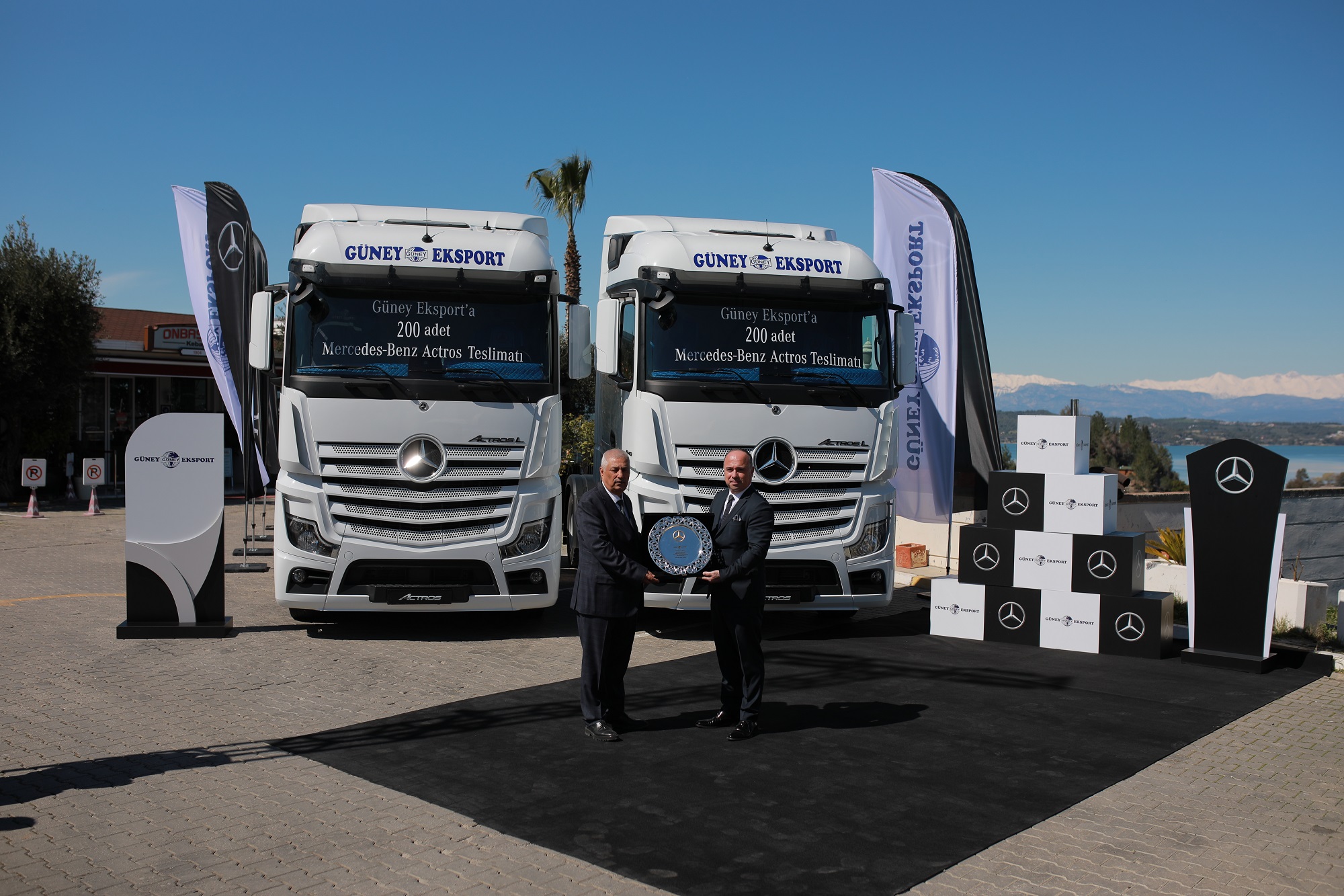 Güney Eksport, Mercedes-Benz Türk’ten teslim aldığı en son teknolojiye sahip 200 adet Mercedes-Benz Actros ile filosunun gücünü artırdı. Şirketin teslim aldığı araçların 180 adedi Actros 1848 LS, 20 adedi ise Actros 3232 ADR’den oluşuyor.