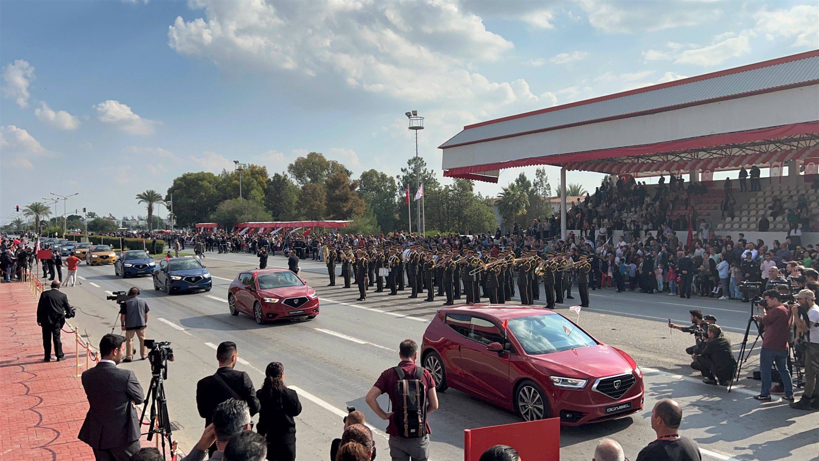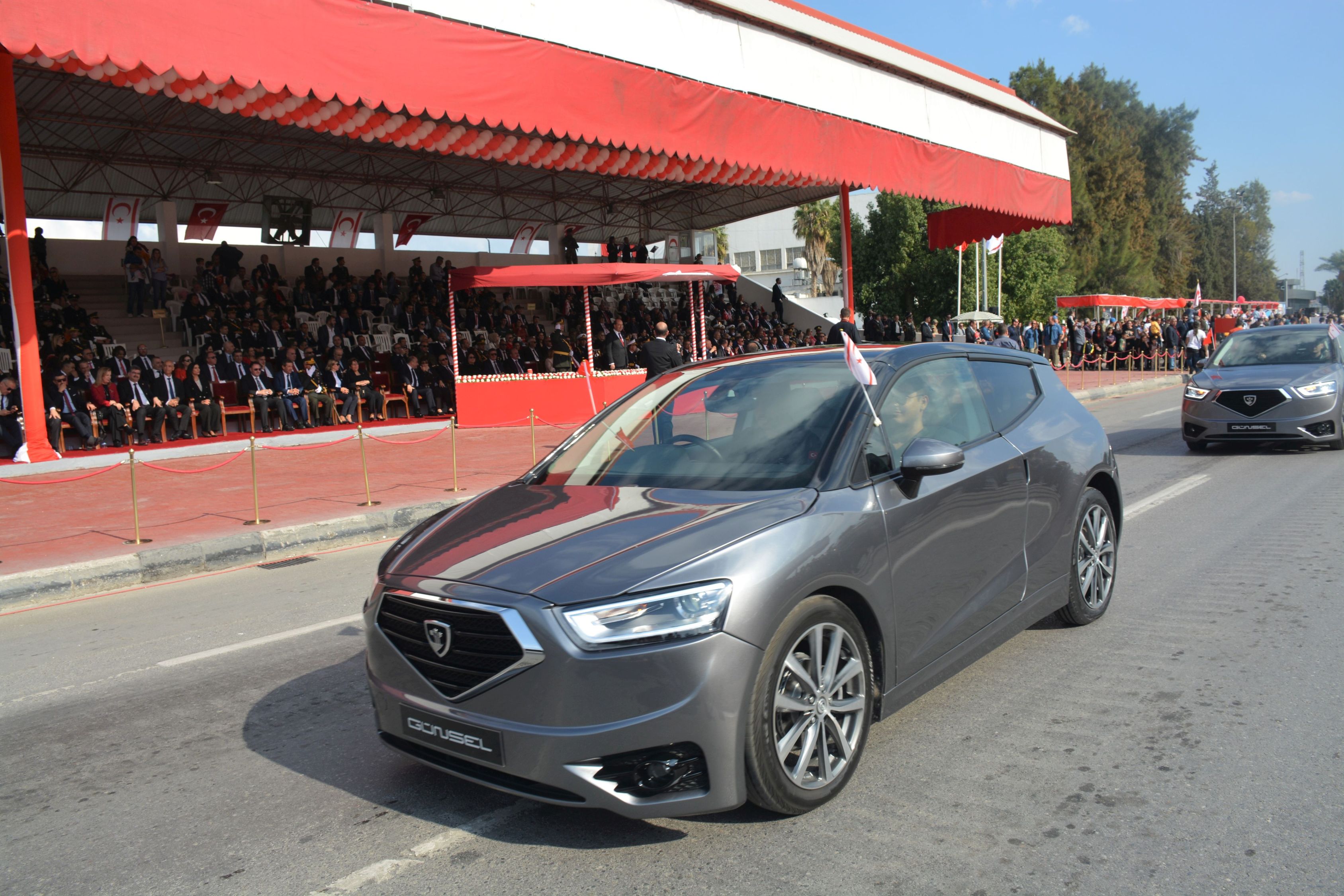 Kuzey Kıbrıs Türk Cumhuriyeti’nin kuruluşunun 39’uncu yıl dönümü, Lefkoşa’da Dr. Fazıl Küçük Bulvarı’ndaki tören alanında kutlandı. Yoğun bir katılımla gerçekleştirilen kutlama ve resmi geçit töreninde; devlet protokolü ve halkı selamlayan Cumhuriyet kortejinde, bütün tasarım ve mühendislik çalışmaları KKTC’de tamamlanan, ülkenin milli ve yerli otomobili GÜNSEL de ilk modeli B9’un 13 prototipi ile yer aldı.