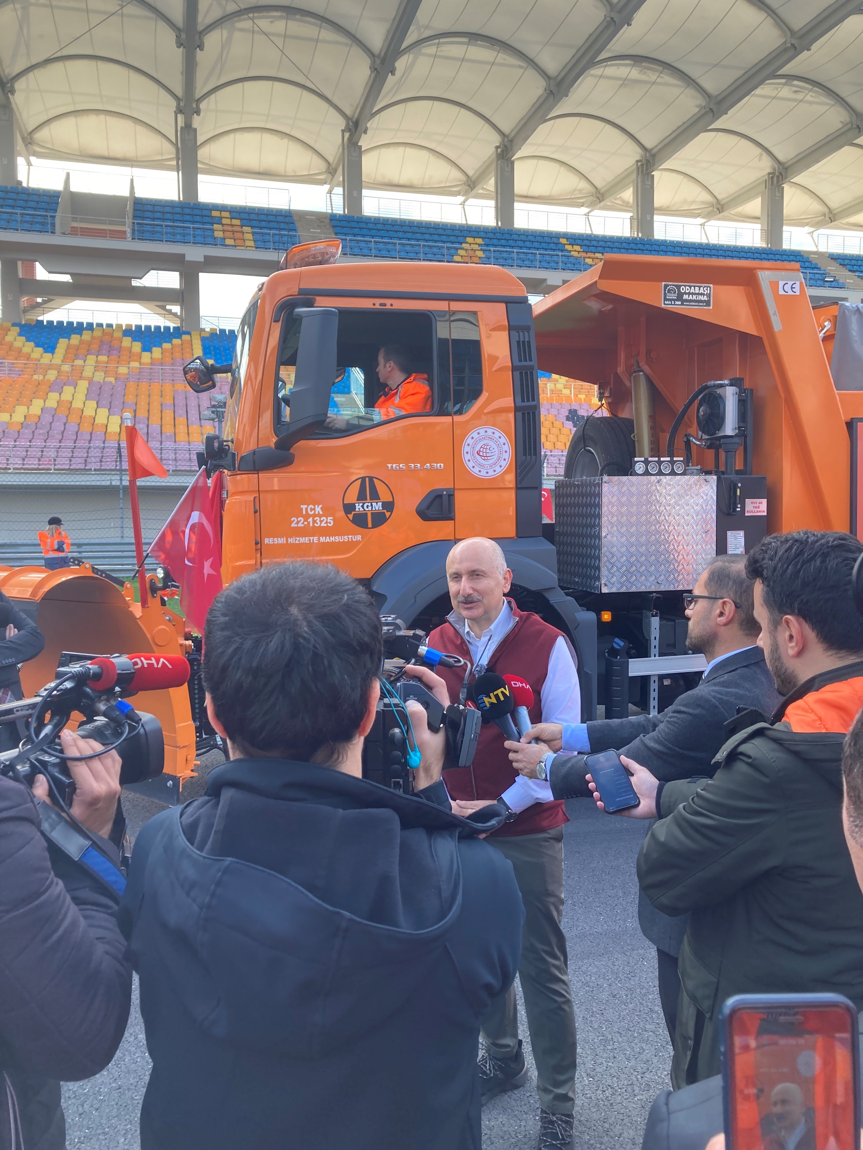 Törende sırasında zorlu kış şartlarında görev alacak yeni araçları beraberindekilerle birlikte yakından inceleyip, yetkililerden bilgi alan Ulaştırma ve Altyapı Bakanı Karaismailoğlu, daha sonra teslimatı yapılan özel donanımlı yeni MAN TGS 33.430 6×6 BB CH Karla Mücadele aracına binerek, bizzat test etti.
