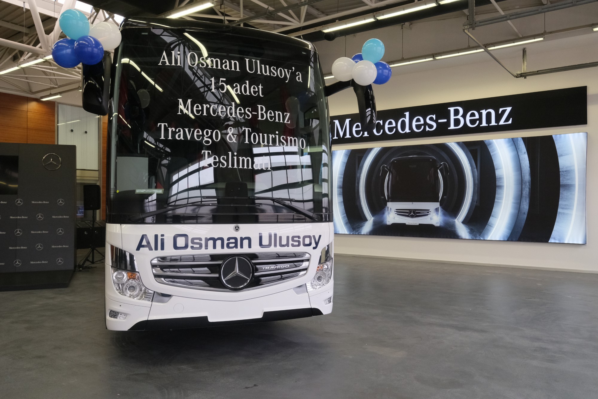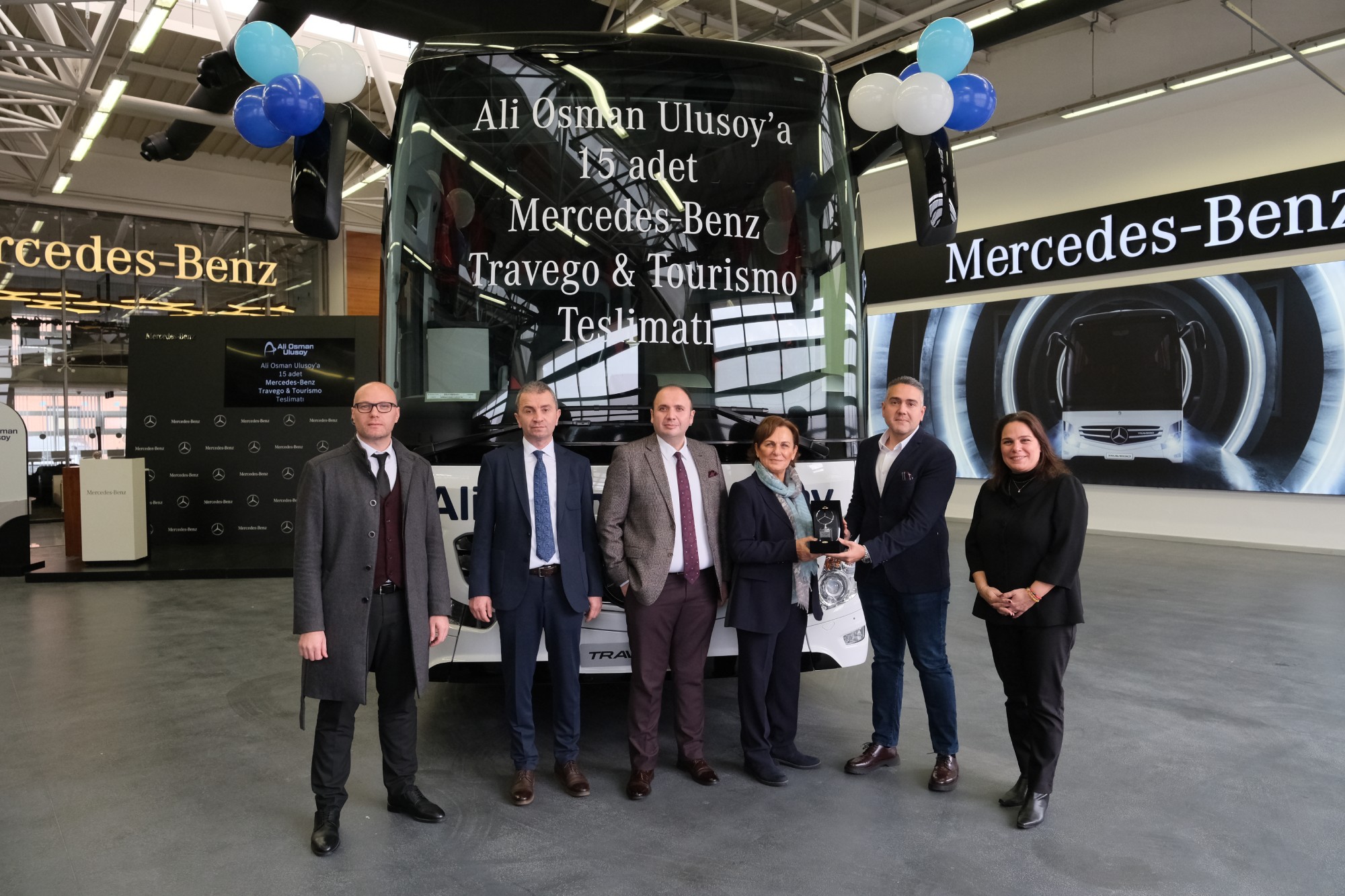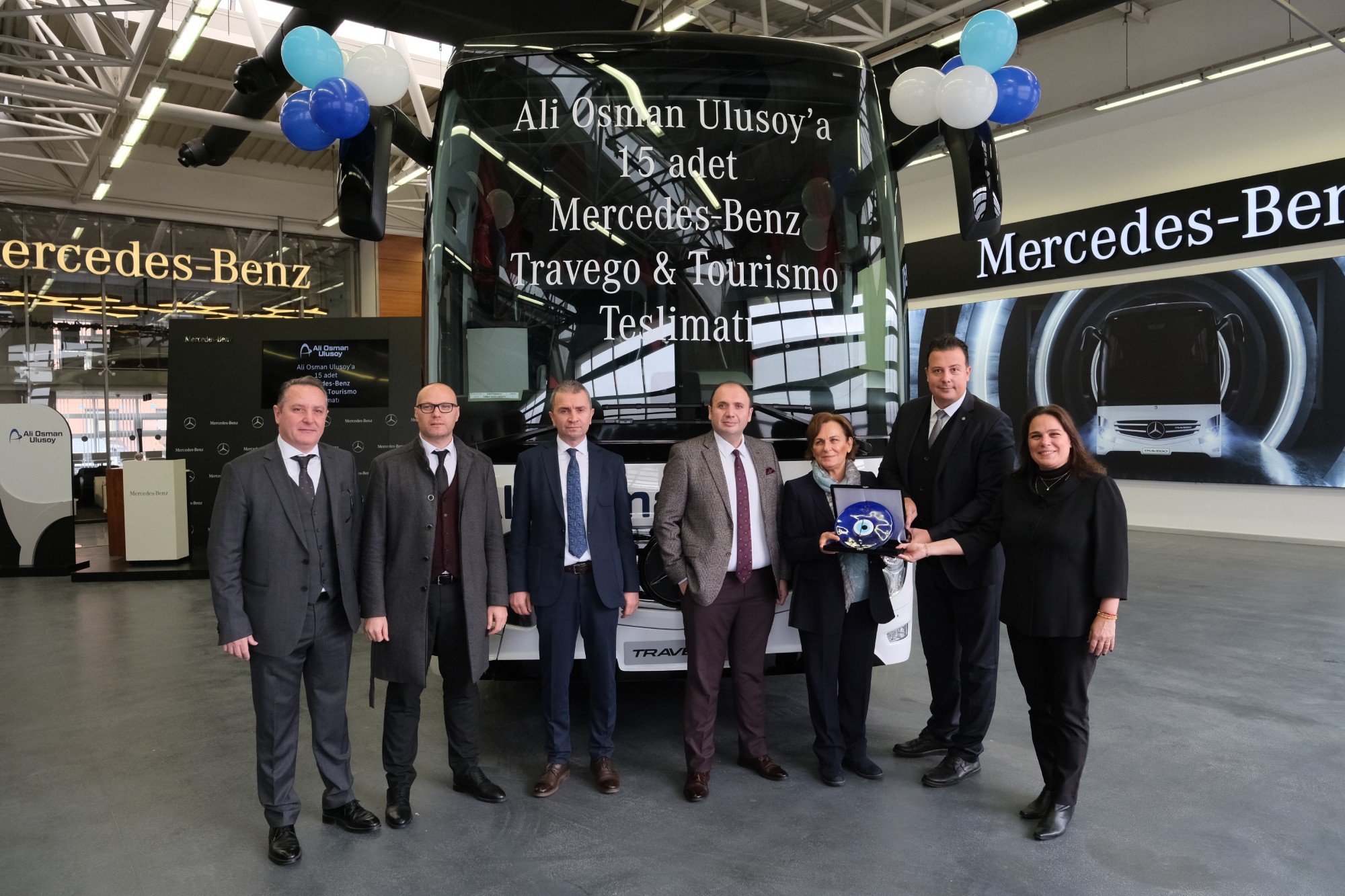 Mercedes-Benz Kamyon Finansman’ın kredi desteğiyle Mercedes-Benz Türk bayisi Hassoy tarafından yapılan satış, 15. otobüs olan Mercedes-Benz Travego 16 2+1’in teslimatıyla tamamlandı. Mercedes-Benz Türk Otobüs Teslimat Holü’nde gerçekleştirilen törene; Ali Osman Ulusoy Şirketler Grubu Yönetim Kurulu Başkanı Hülya Ulusoy, Ali Osman Ulusoy Şirketler Grubu Yönetim Kurulu Başkan Yardımcısı Ahsen Aydın, Ali Osman Ulusoy Şirketler Grubu Yönetim Kurulu Başkan Yardımcısı Gülşah Helva, Ali Osman Ulusoy Şirketler Grup Başkanı Murat Seymen, Ali Osman Ulusoy Turizm Genel Müdürü Eray Eray, Mercedes-Benz Türk Otobüs Satış ve Pazarlama Direktörü Osman Nuri Aksoy, Mercedes-Benz Türk Otobüs Filo Satış Grup Müdürü Burak Batumlu, Hassoy Motorlu Vasıtalar Genel Müdürü Selim Saral ve Hassoy Motorlu Vasıtalar Otobüs Satış Müdürü Cenk Soydan katıldı.