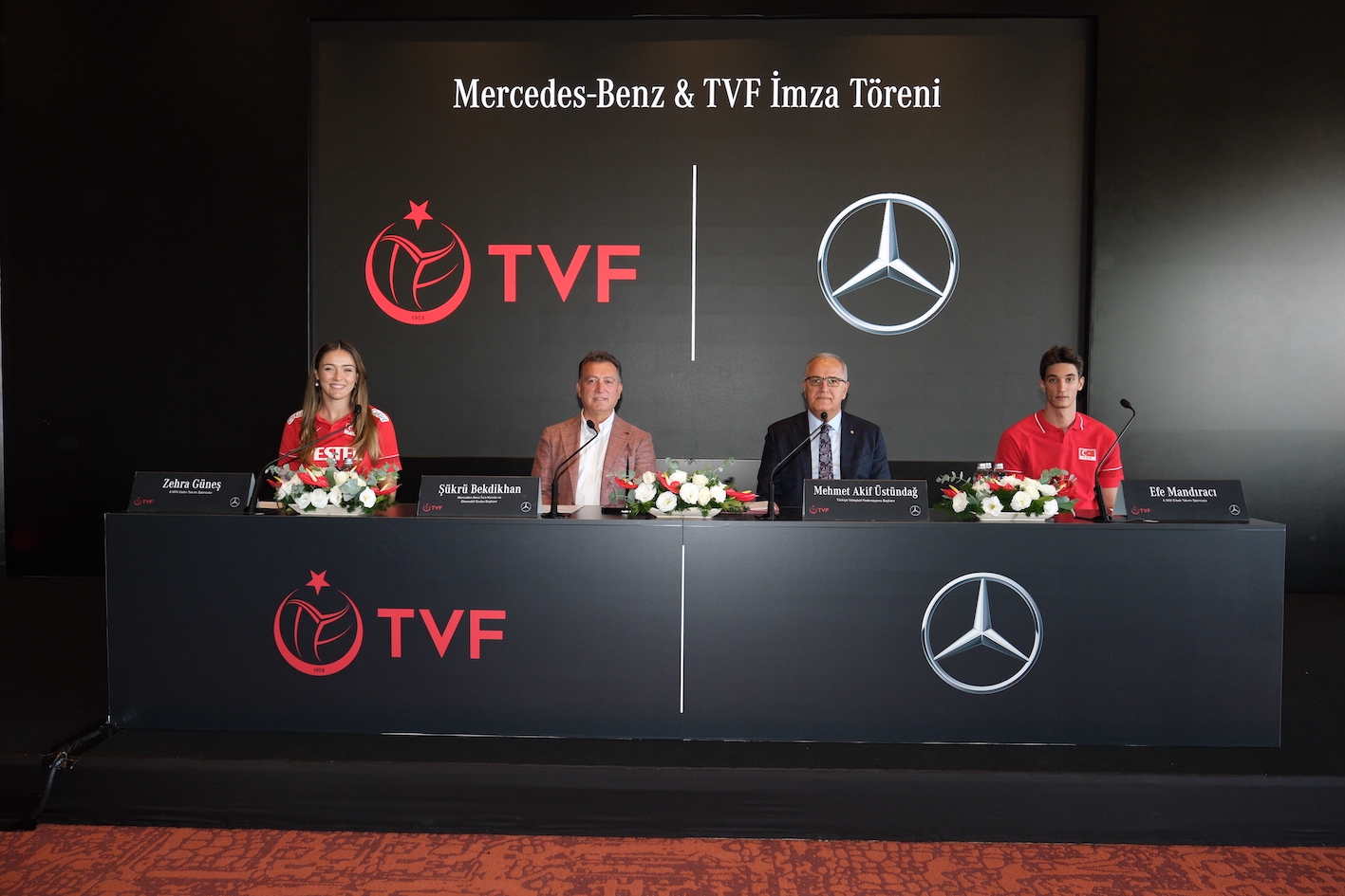 Mercedes-Benz, Türkiye’de 26 yıldır sürdürdüğü milli takımlar düzeyindeki sponsorluk desteklerine bir yenisini daha ekleyerek Türkiye Voleybol Federasyonu ile yaptığı anlaşma kapsamında, Voleybol Milli Takımlar Ana Sponsoru oldu. İş birliği duyurusunun gerçekleştiği imza gününe Türkiye Voleybol Federasyonu Başkanı Mehmet Akif Üstündağ ve federasyon temsilcileri, Voleybol Milli Takımlar Ana Sponsoru Mercedes-Benz’in üst düzey yöneticileri ve milli voleybolcu Zehra Güneş ile Efe Mandıracı katıldı. Törende konuşan Mercedes-Benz Otomotiv İcra Kurulu ve Otomobil Grubu Başkanı Şükrü Bekdikhan, spora ve sporcuya daha fazla katkı sağlayarak birlikte yeni zaferler yaşamayı hedeflediklerini dile getirdi.
