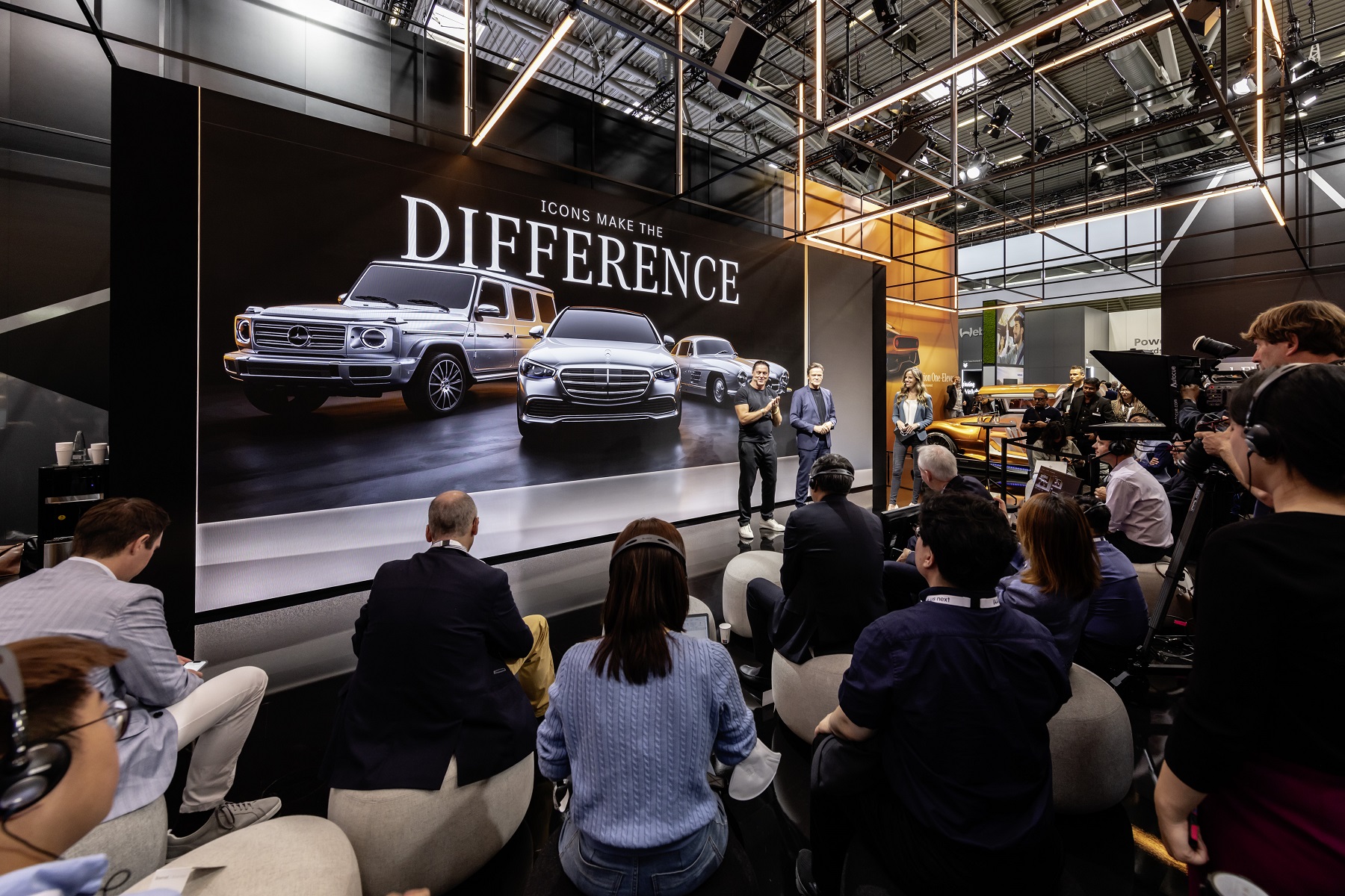 Münih Residence’taki Apothekenhof’ta başlayan IAA Münih’te Mercedes-Benz alanını ziyaret edenler Mercedes-AMG, G-Serisi, Mercedes-Maybach ve Mercedes-Benz Hafif Ticari Araçlar ve yeni model elektrikli araçlarını özel ‘Açık Alan’da deneyimlerken aynı zamanda elektrikli araçlardan oluşan eksiksiz bir ürün yelpazesinin yanı sıra şarj ve dijital ekstralar hakkında bilgilendirici sergilere katıldı.