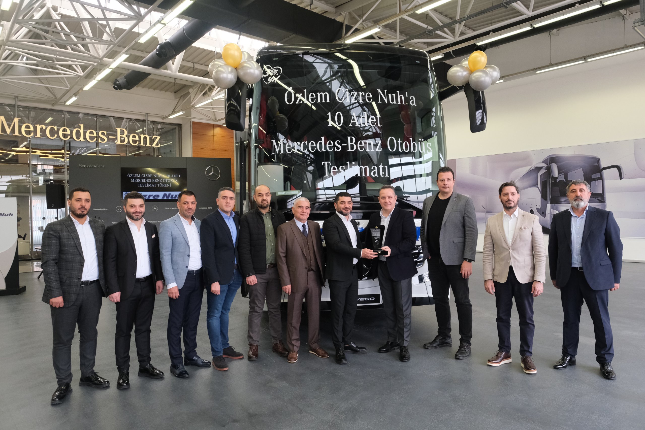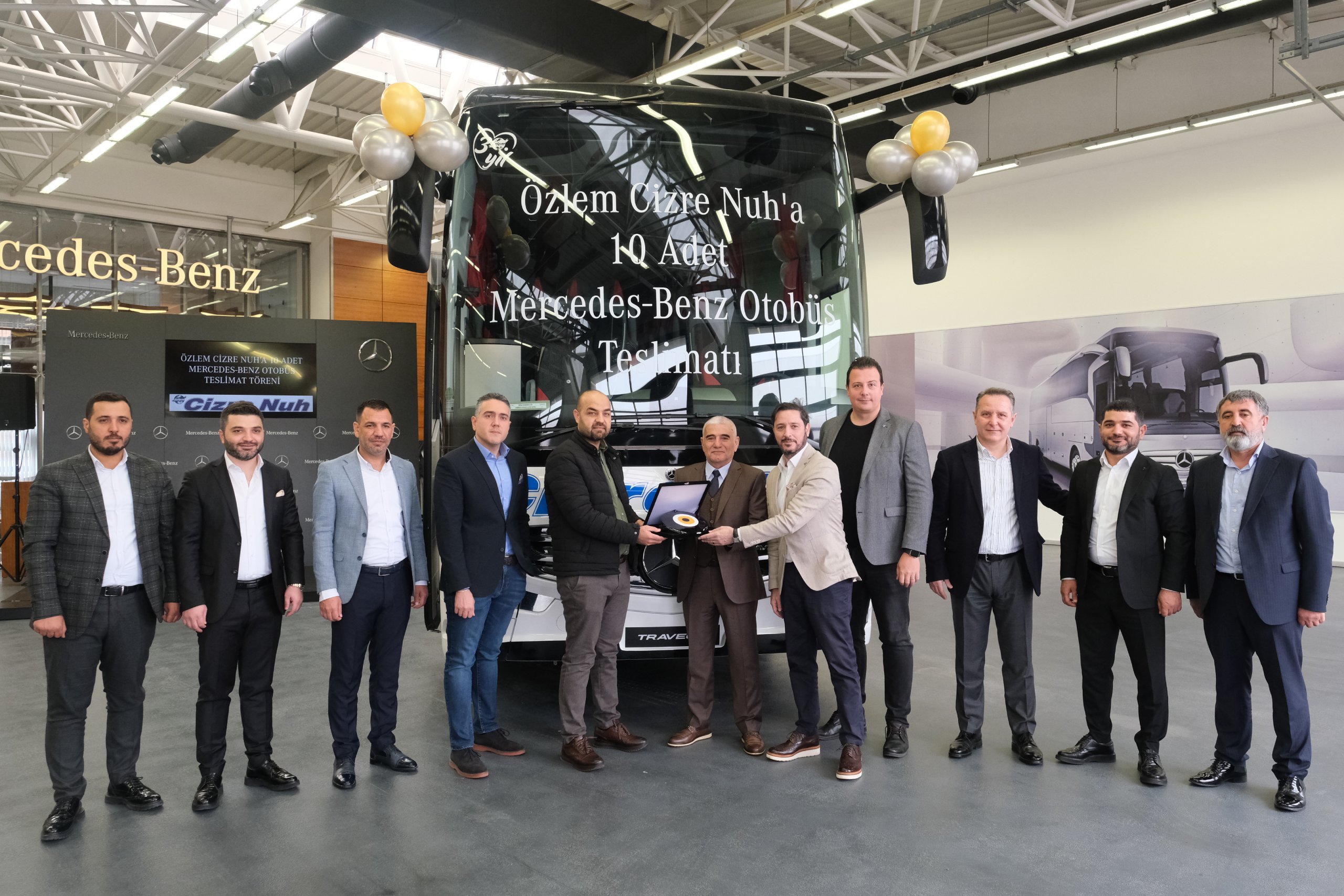 Mercedes-Benz Kamyon Finansman A.Ş.’nin desteği ile Mercedes-Benz Türk Bayisi Koluman tarafından satışı yapılan 4 adet Travego 16 2+1 için Mercedes-Benz Türk Genel Müdürlük Kampüsü’nde bir teslimat töreni düzenlendi. Gerçekleştirilen törende araçlar; Mercedes-Benz Türk Otobüs Filo Satış Grup Müdürü Burak Batumlu, Mercedes-Benz Türk Otobüs Satış Operasyonları Grup Müdürü Özgür Taşgın ve Koluman Otobüs Satış Koordinatörü Fevzi Kaplan tarafından, Özlem Cizre Nuh Yönetim Kurulu Başkanı Abdürrahim Nur, Özlem Cizre Nuh Yönetim Kurulu Başkan Yardımcısı Burak Nur, Özlem Cizre Nuh Yönetim Kurulu Üyesi Ömer Nur, Özlem Cizre Nuh Yönetim Kurulu Üyesi Nurullah Nur, Özlem Cizre Nuh Yönetim Kurulu Üyesi Mustafa Nur, Özlem Cizre Nuh İstanbul Bölge Müdürü Kadir Başboğa ve Özlem Cizre Nuh İstanbul Temsilcisi Mahmut Yürük’e teslim edildi.