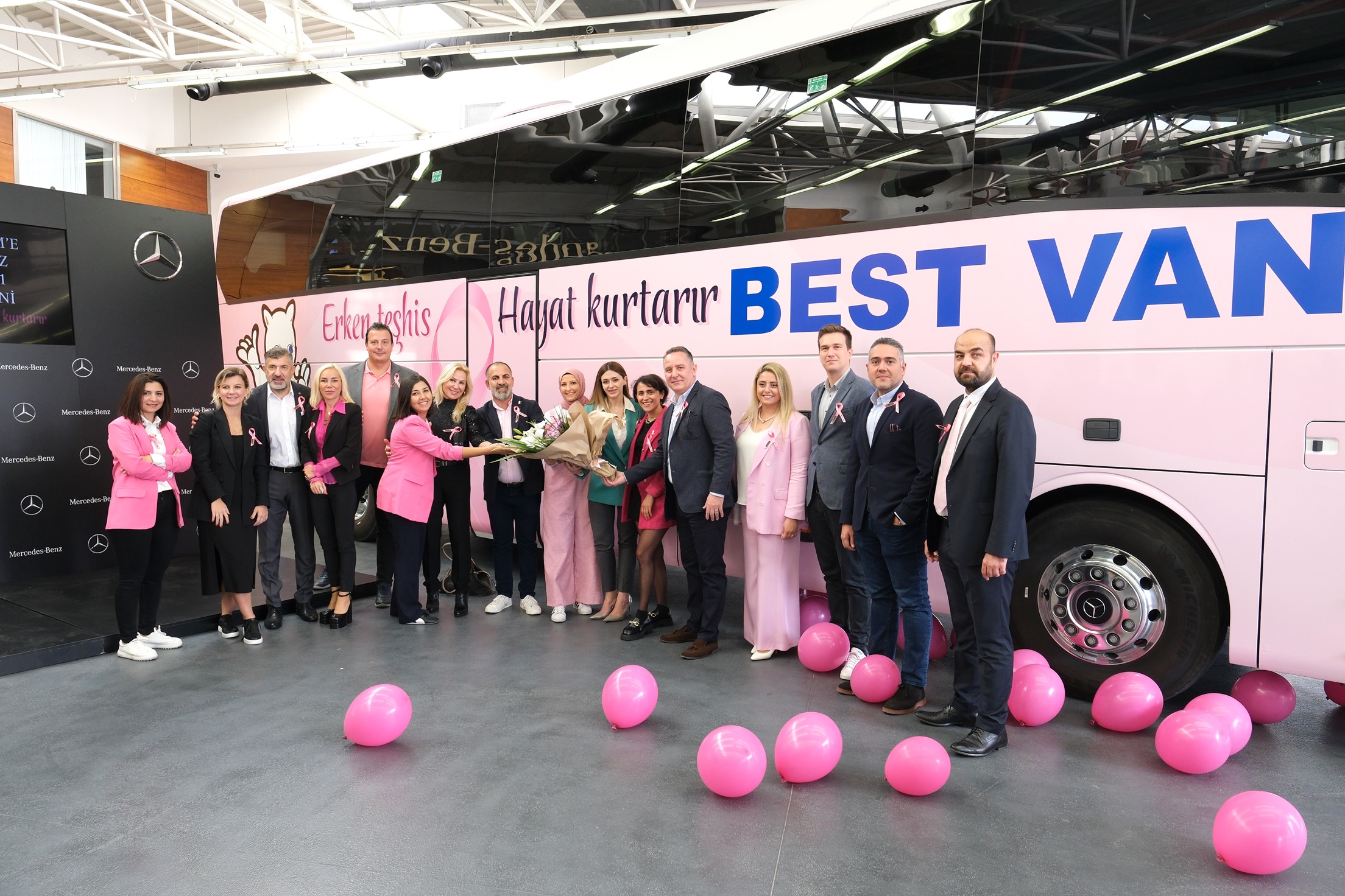 Mercedes-Benz Türk, Hoşdere Otobüs Fabrikası’nda üretilen ve pembe tasarımla giydirilen Mercedes-Benz Travego 16 2+1’i Best Van Turizm’e teslim etti. Meme Kanseri Bilinçlendirme ve Farkındalık Ayı olan Ekim ayında Best Van Turizm filosuna katılan araç, meme kanseri ile mücadeleye dikkat çekmek için 2022 yılı boyunca yollarda olacak. Aracın teslimatı için 12 Ekim 2022 tarihinde Mercedes-Benz Türk Genel Müdürlük Kampüsü’nde bir tören gerçekleştirildi.