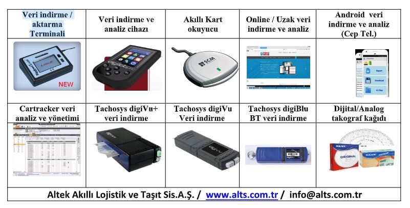 Verileri indirmek, saklamak, yönetmek, analiz ederek sürücülerin ihlallerini tespit etmek için kullanabileceğiniz, cihaz, yöntem ve yazılımların örnekleri tabloda görülmektedir. Yurtiçi nakliyatta çalışan firmaların kullanacakları yazılımın, milli mevzuatımıza göre de analiz yapıp ihlalleri çıkarabilmesi önemlidir. Her yazılımda bu özellik yoktur. Tabloda gördüğünüz yazılım, Karayolları Trafik Yönetmeliği’ne göre de analiz yapabilmektedir. Takograf konusunda bilgi almak isteyenler, bu satırların yazarı ile kayıtlı mail adresi üzerinden ulaşarak bilgi alabilirler. Takograf uygulamasının amacı; sürücülerin haklarını korumak, firmalar arasından rekabet şartlarını eşitlemek ve kazaları önlemektir. Herkes kurallara uygun çalıştığı taktirde, rekabet bozulmayacak ve kazalar azalacaktır. Bu herkesin yararına olacaktır. Takograf konusunda kimse geri dönüş beklemesin artık. Teknolojinin ilerlemesine bağlı olarak bu denetimler çevrimiçi (İnternet üzerinden) yapılır hale gelecek, o zamana kadar hazırlıklarını yapamayan firmalar çok büyük sıkıntılar yaşayacaktır. Yolunuz açık olsun!