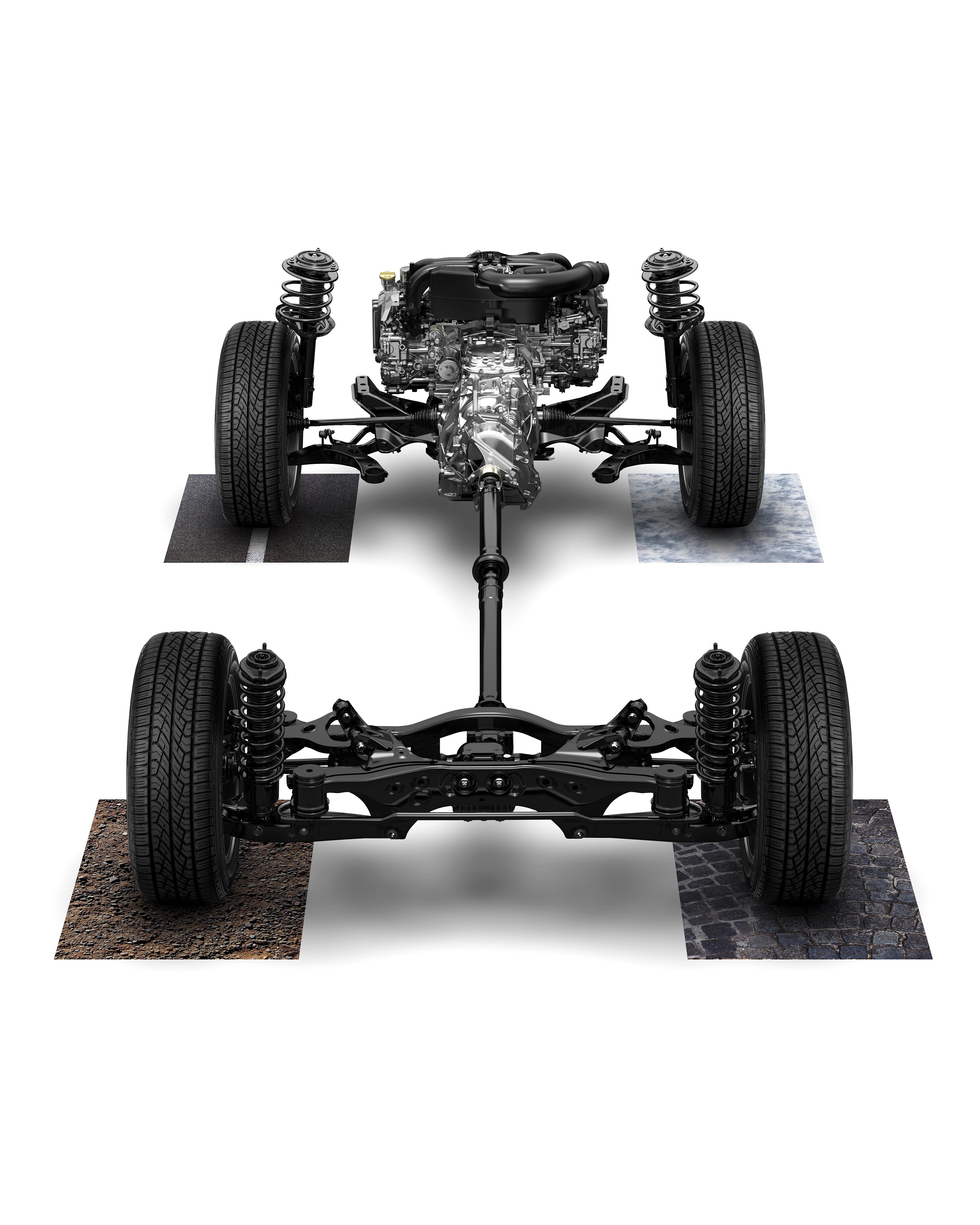 Uzunlamasına yerleşimli, karşılıklı yatay ve düşük ağırlık merkezine sahip Subaru Boxer Motor ve simetrik tasarlanmış AWD aktarma organlarından oluşan Simetrik Sürekli Dört Çeker Sistemi, Subaru’nun tüm hava ve yol koşullarında her zaman en iyi denge, güvenlik ve yol performansı sunmak için odaklandığı bir sistem. Markaya özgü Simetrik Sürekli Dört Çeker sisteminin en ayırt edici özelliği, yatay karşılıklı motorun temeli olan aktarma organlarının simetrik olarak düz bir çizgide yerleştirilmiş olması. Dört tekerleğe de eşit ağırlık dağıtıldığından, lastikler mükemmel bir yol tutuşu sağlıyor ve böylece olağanüstü sürüş performansı elde ediliyor. Boxer motor tarafından sağlanan düşük ağırlık merkezi ve simetrik aktarma organlarının üstün ağırlık dengesinin kombinasyonu, çeşitli hava ve yol koşullarında üstün sürüş performansı sunarak dört tekerlekten çekişe özgü dengeyi ve yol tutuşunu en üst düzeye çıkartıyor.