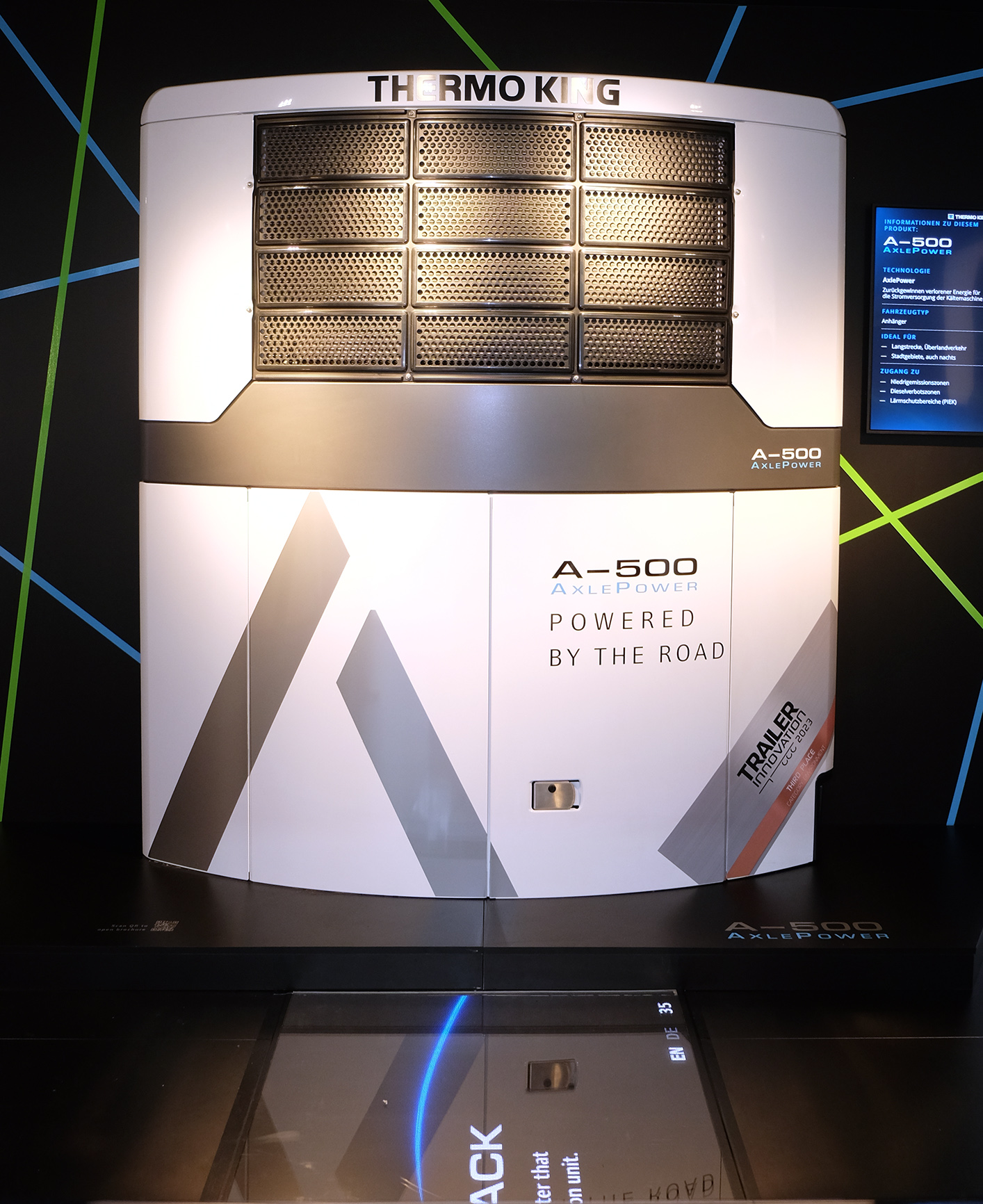 Thermo King “AxlePower” sistemi, araç hareket halindeyken veya fren yaparken üretilen enerjiyi, yüksek voltajlı bir aküde depolayarak soğutma ünitesine güç sağlamak için kullanıyor. Böylelikle tamamen elektrikli, sıfır emisyonlu ve otonom treyler soğutması sağlanıyor. Depolanan enerji, yaklaşık 5 saatlik standart soğutma için yeterli oluyor.