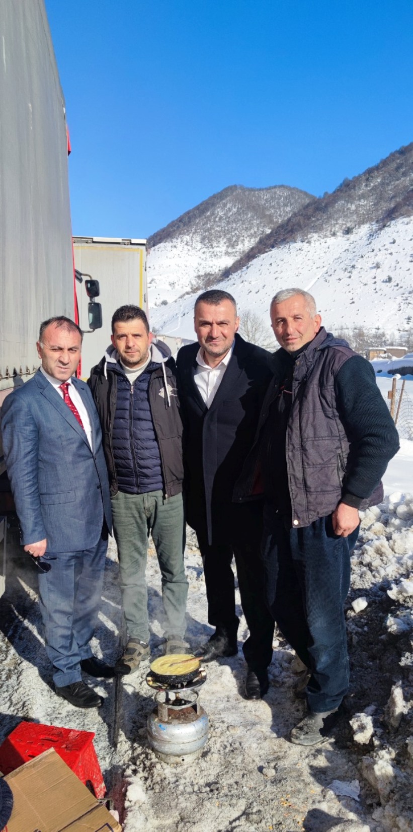 Alişan Topaloğlu ve Abdullah Özer Gürcistan-Rusya arasındaki sınır kapısına ve yol güzergâhında sınıra yönelmeye çalışan lakin ağır kış koşullarından ötürü yol hattının kapalı olmasından Gürcistan’da bekleyen TIR şoförlerine moral ziyaretinde bulundu.