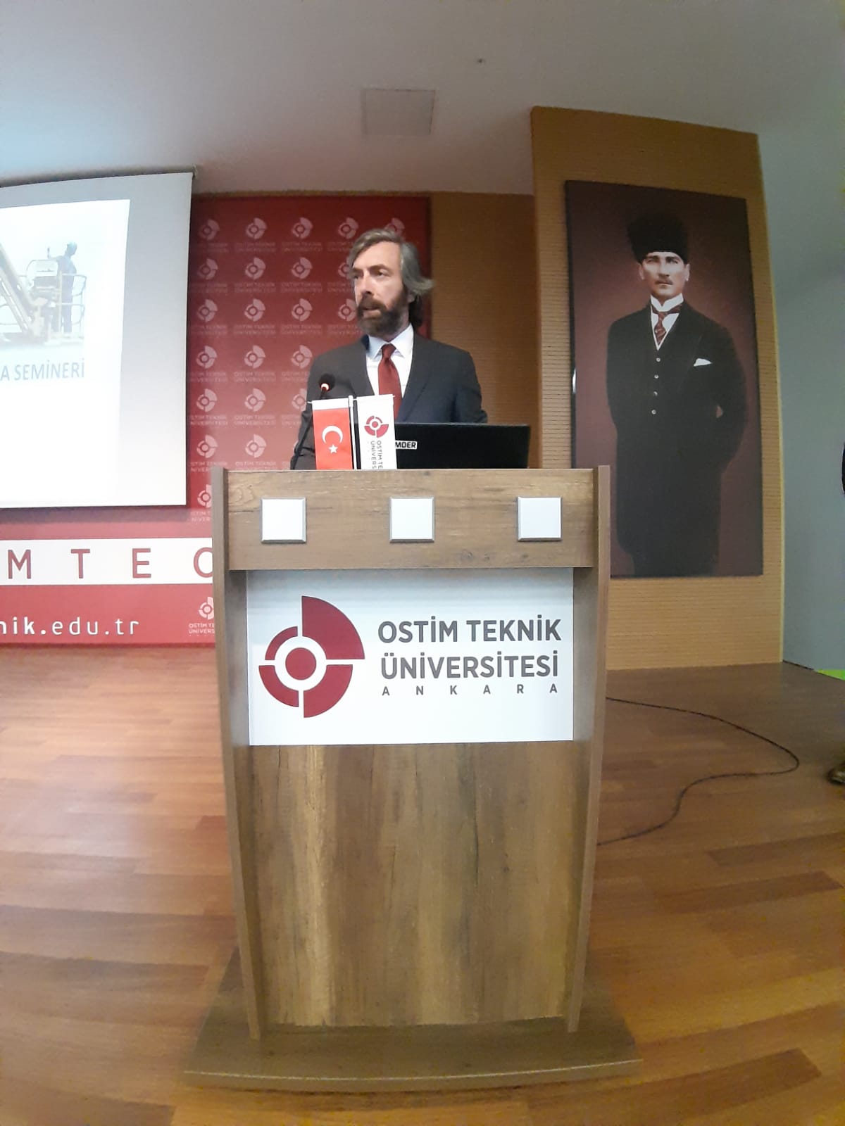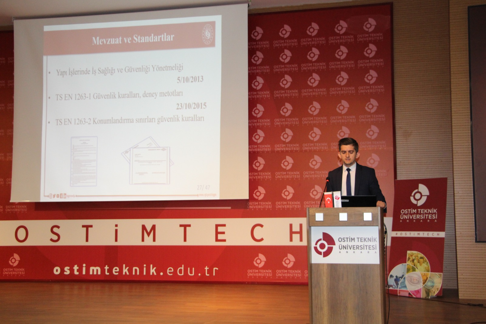 Programa ev sahipliği yapan Ostim Teknik Üniversitesi adına söz alan Rektör Yardımcısı Prof. Dr. Serdar Müldür; Yüksekte Çalışma Seminerinde Ostim Teknik Üniversitesi Rektör Yardımcısı Prof. Dr. Serdar Müldür, açılış konuşmasında; bugün burada önemli bir konuda yapılan seminere ev sahipliği yapmaktan mutluluk duyduğumuzu belirtmek istiyorum. Kıymetli başkanlarımızın da açılış konuşmalarında bahsettikleri gibi yüksekte çalışma hayatımızın her alanında karşımıza çıkmaktadır. Bu nedenle yapılacak her türlü çalışma gerek yüksekte çalışmada kazaların önüne geçecek, gerekse bu alanda faaliyet gösteren sektörlerin gelişmesine vesile olacaktır. Bu seminere genç mühendisleri de davet ederek ÜNİVERSİTE – STK – SANAYİ iş birliğine güzel bir örnek çalışma olmuştur. Bu seminerde emeği geçen herkese teşekkür ederim. İfadelerini kullandı ve üniversitede öğrencilerin de katılacağı böyle bir seminerin tekrarlanması için talepte bulundu.